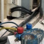 These sounds specifically indicate refrigerant escaping through a compromised point a hairline crack in the copper piping, a loose flare joint, or a degrading valve seal. You’re not dealing with a slow, microscopic loss that occurred over years. You’re dealing with an active, aggressive refrigerant leak that needs to be located and sealed before any top-up is performed.